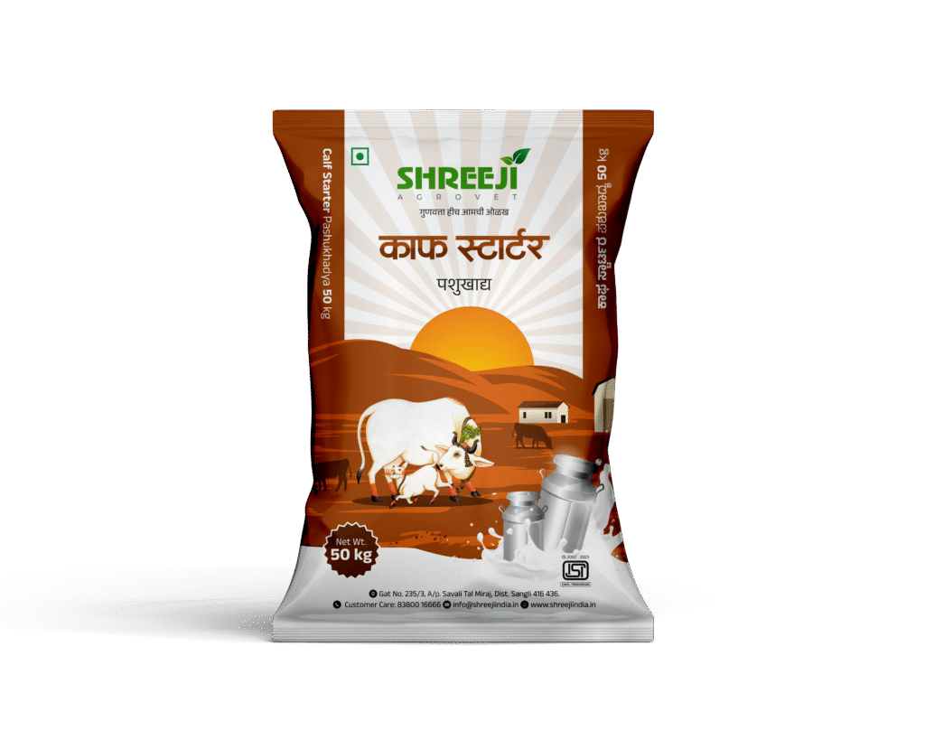 Shreeji Calf Starter is a scientifically developed, nutrient-rich feed designed to support healthy gut development and digestion in calves. It is formulated using advanced technology to ensure a strong foundation for lifelong health and growth.
