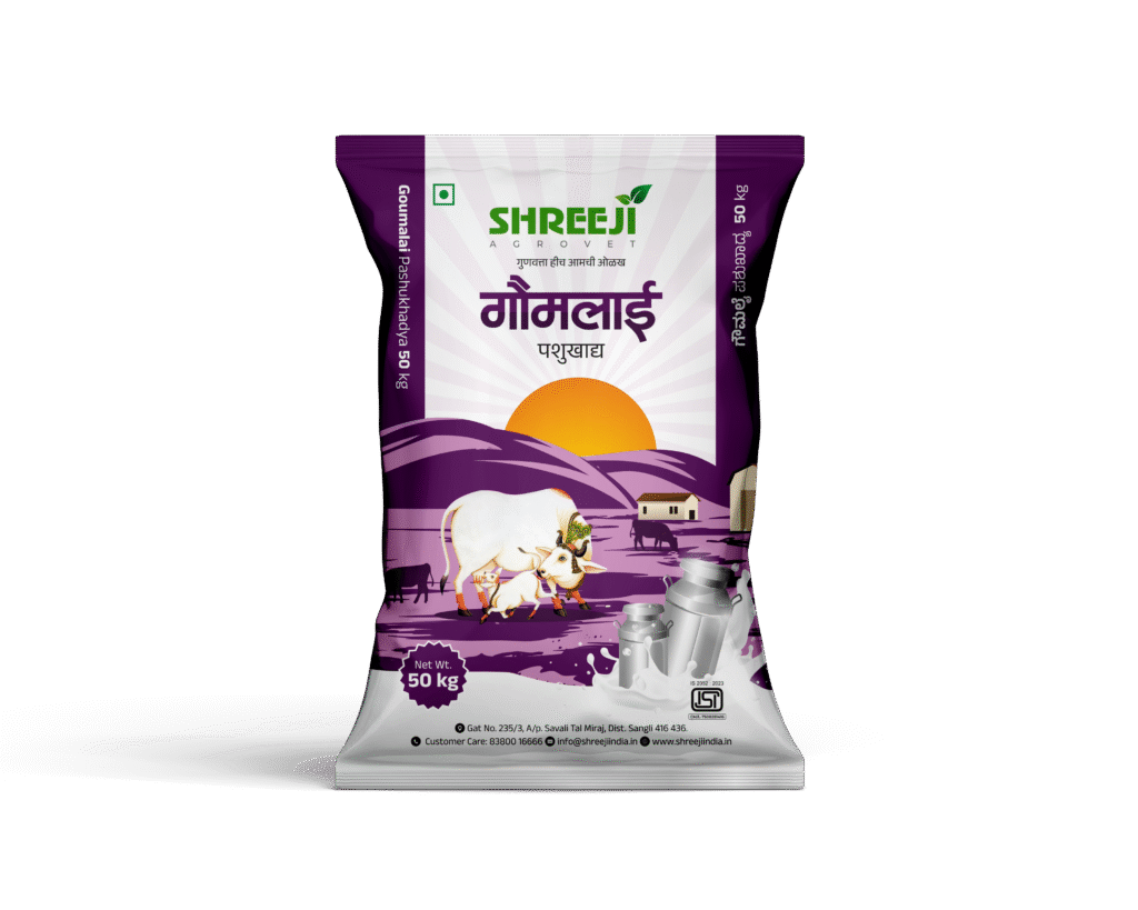Gaumalai is a premium, high-performance cattle feed from Shreeji Agrovet, specially formulated for high-yielding dairy cows (producing over 18–20 liters/day). Enriched with all essential nutrients, it ensures superior milk quality, reproductive health, and overall animal wellness.