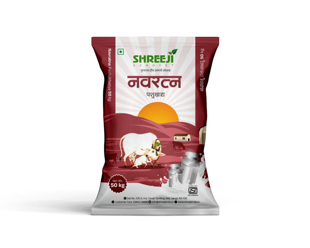 Navratna Cattle Feed is a balanced and economical feed specially formulated for cows and buffaloes with low milk yield. It supports daily nutrition, milk production, and body maintenance.