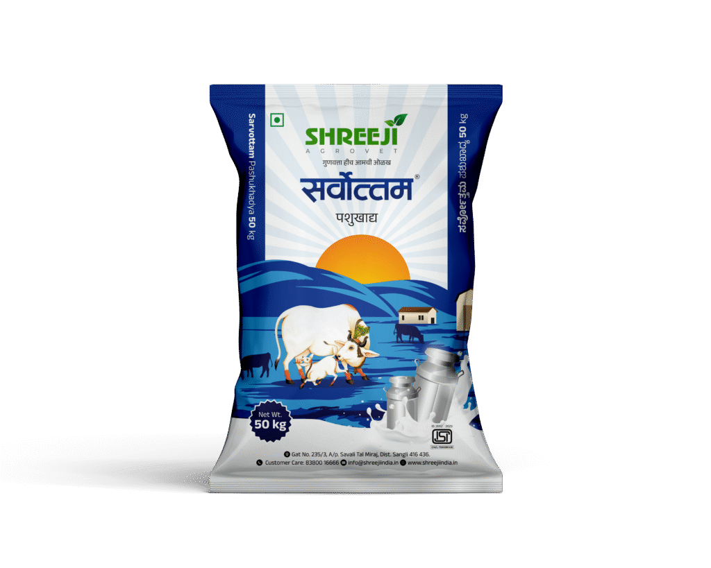 Sarvottam Cattle Feed is a balanced and nutrient-rich feed designed for medium-yielding dairy cows producing approximately 10 to 15 liters of milk per day. It supports healthy milk production and body maintenance.