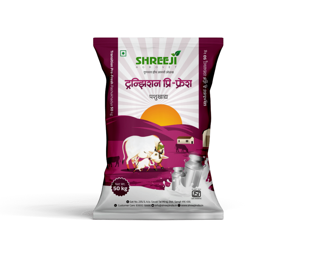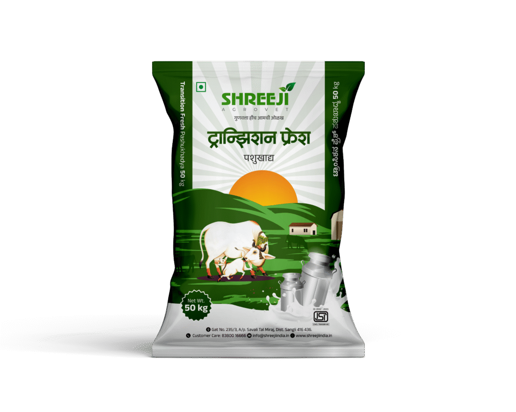 Shreeji Transition Feed-Fresh is a scientifically formulated pre-fresh feed designed for cows and buffaloes during the critical transition period (3–4 weeks before calving). It supports a smooth shift from pregnancy to lactation, ensuring better animal health and productivity.